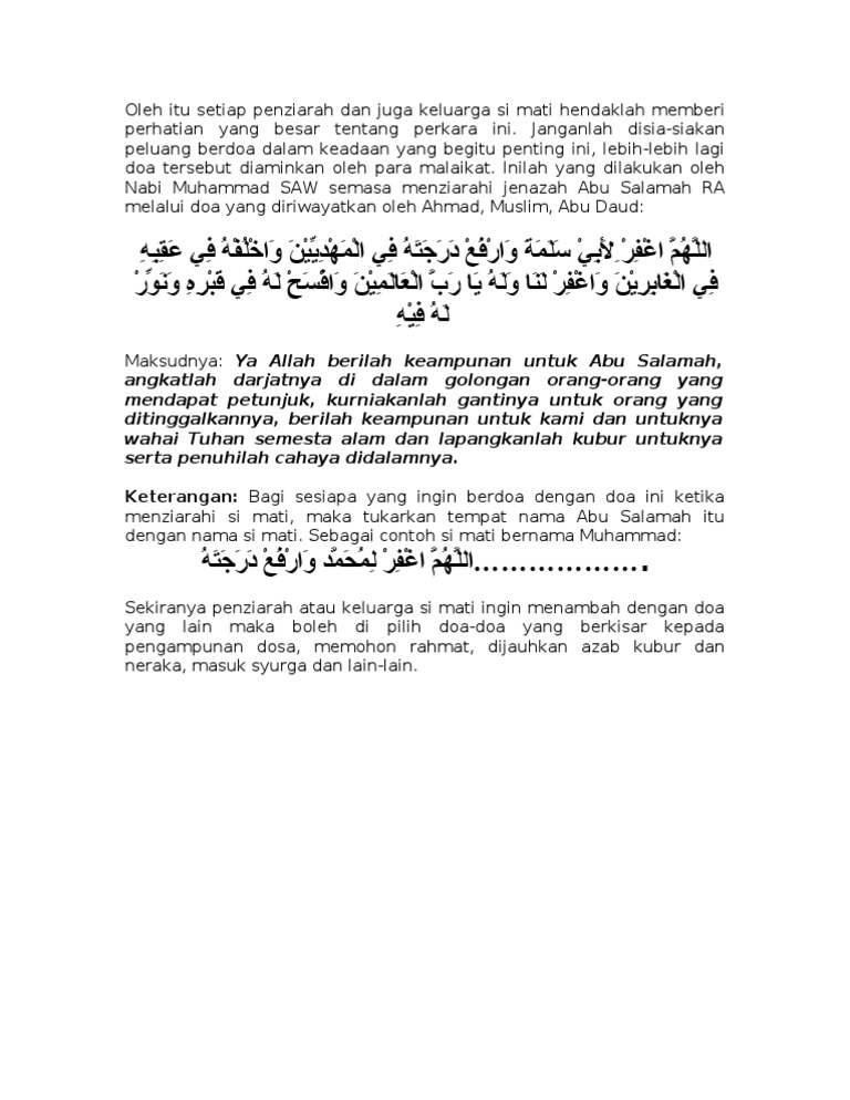 Berikut bacaan doa ziarah kubur sesuai islam Dalil tentang membaca al quran surat yasin ketika kita berziarah adalah hadits lemah yang. Ketahuilah bahwa setiap makhluk yang bernyawa pasti akan meninggal, entah kapan dan dimana tidak ada satu pun yang mengetahui. Informasi tentang lafal bacaan doa ziarah kubur tulisan arab latin serta terjemah bahasa indonesia disertai dengan tatacara dan adab memasuki wilayah berikut adalah tulisan arab dan latin untuk doa ziarah kubur yang lengkap dengan harakat syakal dan disertakan tulisan latin guna memudahkan. Baginda nabi saw bersabda …berziarah kuburlah, karena dengan ziarah kubur dapat mengingatkan akan kematian.