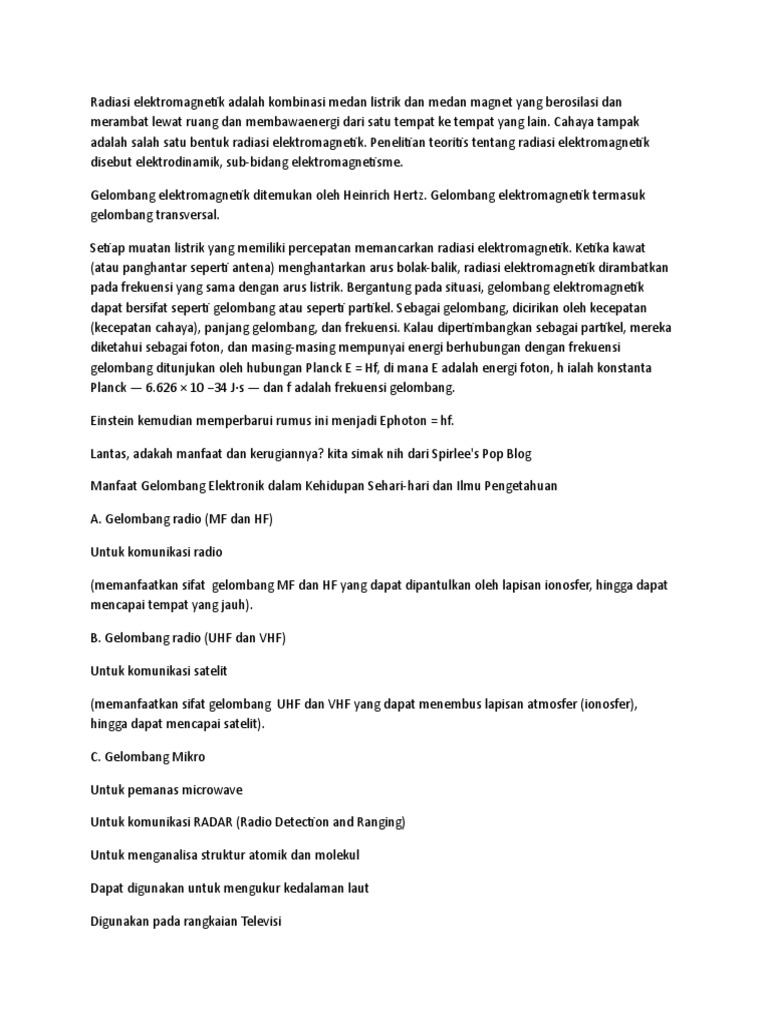 Untuk komunikasi komunikasi radio (memanfaatkan sifat sifat gelombang mf dan hf yang dapat dapat dipantulkan oleh lapisan ionosfer. Jenis gelombang elektromagnetik berdasarkan gelombang dan frekuensinya dibedakan menjadi 7 macam yaitu: Frekuensi sedang (mf) adalah sebutan itu untuk frekuensi radio (rf) dalam kisaran 300 kilohertz (khz) hingga 3 megahertz (mhz). Gelombang radio terdiri atas mf dan hff serta uhf dan vhf. Propagasi gelombang radio adalah sifat dari gelombang radio saat merambat dari satu titik ke titik lainnya.